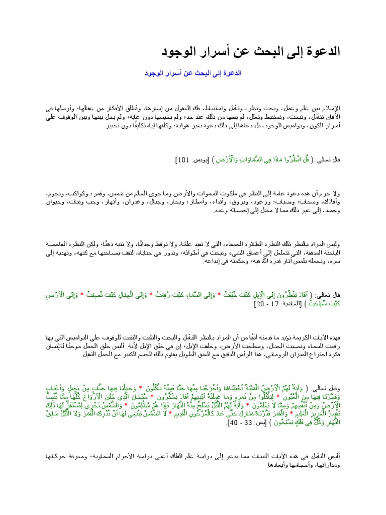 الدعوة إلى البحث عن أسرار الوجود