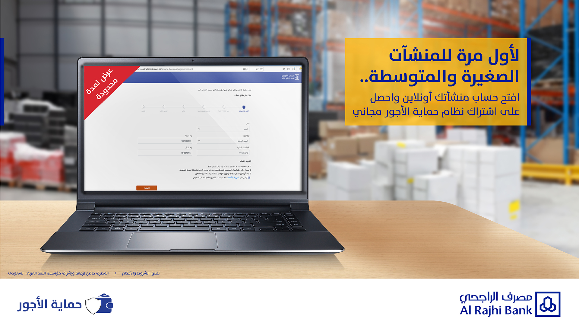 Al Rajhi Bank مصرف الراجحي لأول مرة للمنشآت الصغيرة والمتوسطة افتح حساب منشأتك أونلاين واحصل على اشتراك نظام حماية الأجور مجانا افتح حسابك الآن Https Bit Ly 3izudoa Facebook