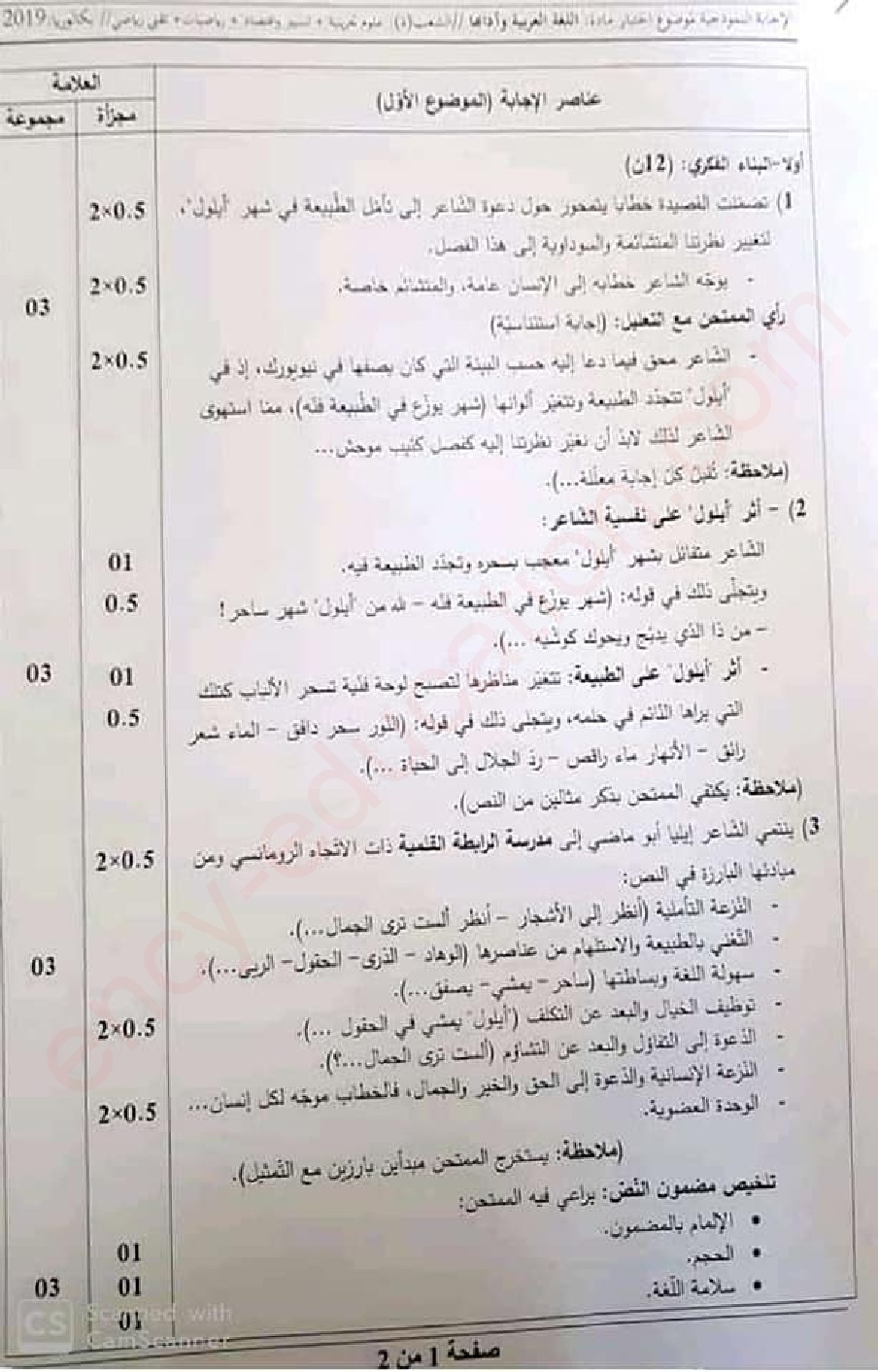 تصحيح موضوع اللغة العربية بكالوريا 2019 جميع الشعب