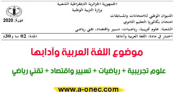 تصحيح موضوع اللغة العربية بكالوريا 2020 شعب علمية موقع الدراسة الجزائري