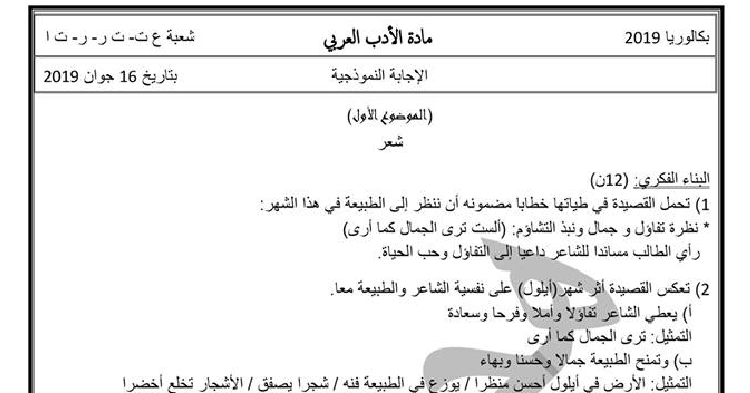 تصحيح موضوع بكالوريا 2019 في اللغة العربية شعب علمية موقع الدراسة الجزائري