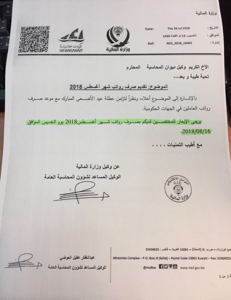 الحقيقة On Twitter وزارة المالية صرف رواتب اغسطس بتاريخ 16 قبل عيد الأضحى المبارك