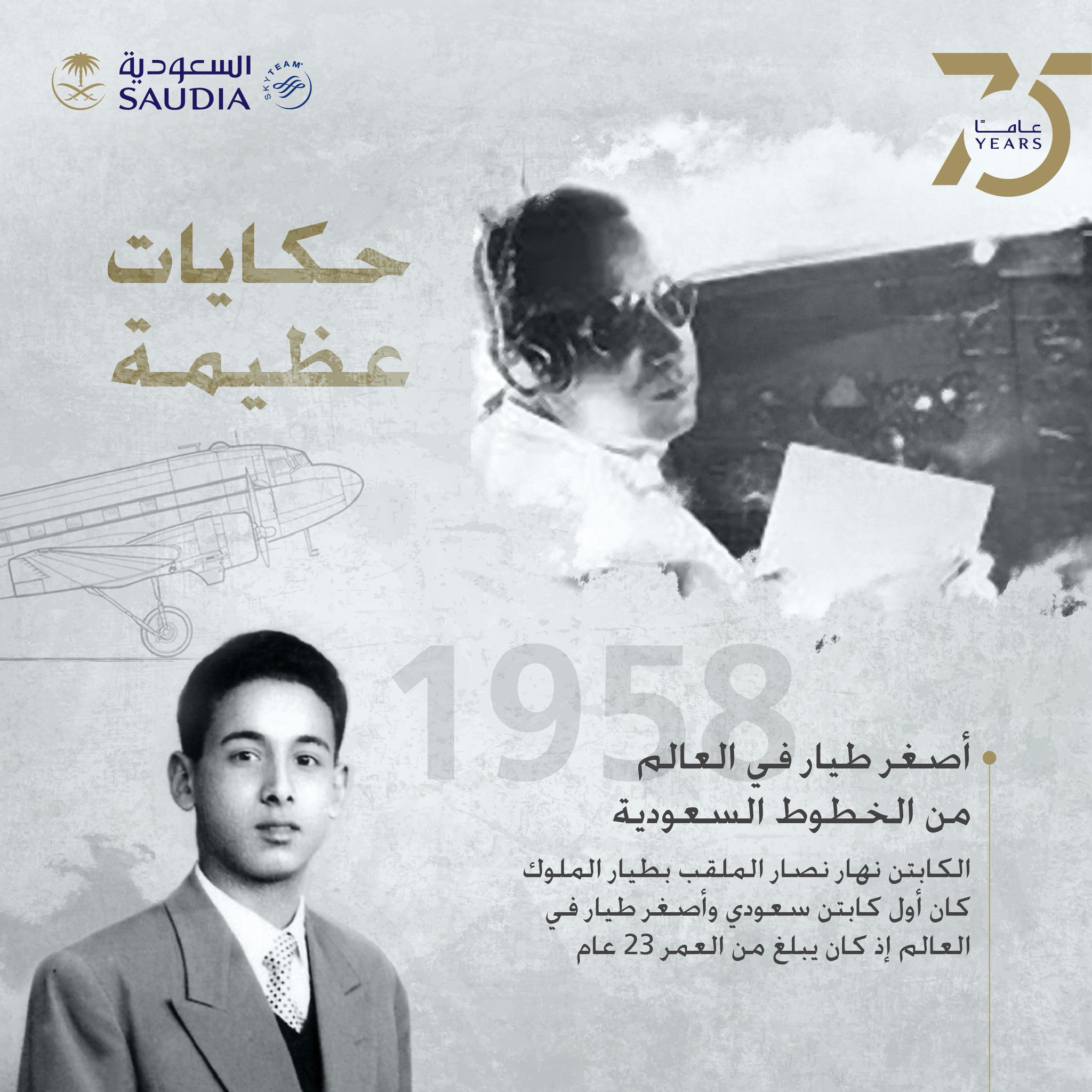 السعودية Saudia On Twitter الكابتن نهار نصار الملقب بطيار الملوك كان أول كابتن سعودي وأصغر طيار في العالم 23 عام Captain Nahar Nassar The Kings Pilot Was The First Saudi Captain