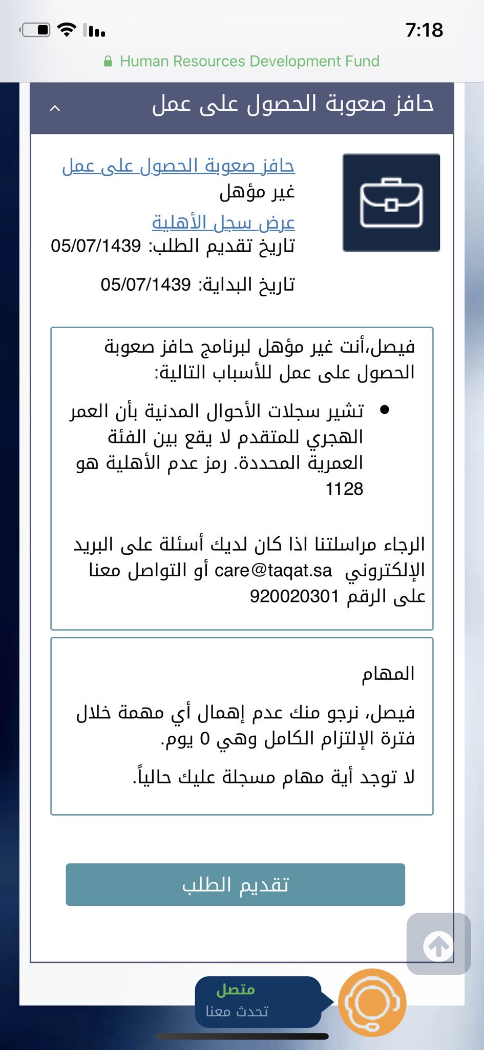 حل مشاكل حافز و طاقات Su Twitter حافز طاقات تقديم مشكله رفض طلب التقديم على حافز ماتزال موجوده حتى اليوم تحت سبب تشير سجلات الأحوال المدنية بأن العمر الهجري للمتقدم